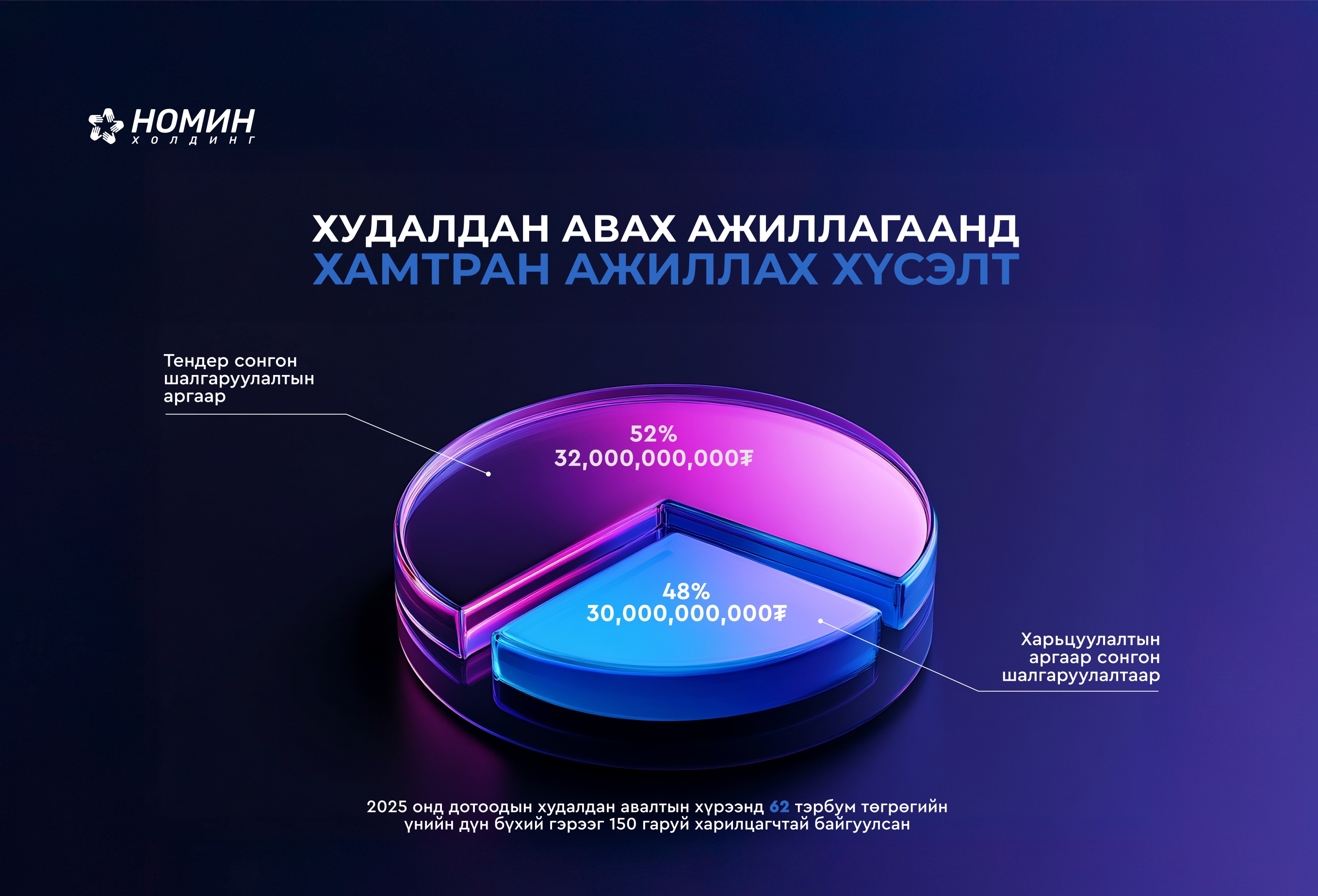 НОМИН ХОЛДИНГ ХХК 2025 онд 150+ түнштэй 60.6 тэрбум төгрөгийн худалдан авалтыг амжилттай хэрэгжүүлж, 2026 онд шинэ хамтын ажиллагаанд урьж байна.